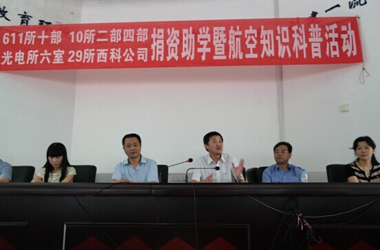 6月26日,来自光电所六室、中航工业611所十部、中国电科10所四部、中国电科29所西科公司的50余名科研人员齐聚雅安市名山县名山二中,开展捐资助学暨航空知识科普活动。