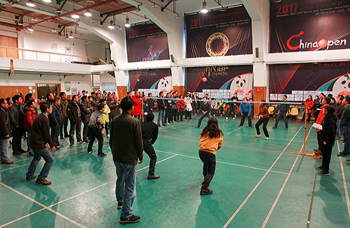为喜迎2018年新春佳节的到来,进一步提升研究所的凝聚力,积极营造健康向上、和谐奋进的创新氛围,2月5日下午,成都山地所工会在四川省体育馆羽毛球馆组织了一场趣味与运动相结合、主题为“筑梦山地共创未来”的职工趣味运动会。现场一片欢声笑语、热闹非凡。运动会由本次比赛裁判长、纪委书记、工会副主席蔡长江主持。所长文安邦、党委书记兼工会主席罗晓梅出席并参与活动。