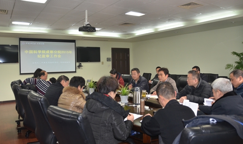 王嘉图传达了十八届中央纪委五次全会、中科院2014年分院纪检组长会议、四川省纪委十届四次全会精神,通报了驻院纪检组、监察审计局2015年重点工作部署。