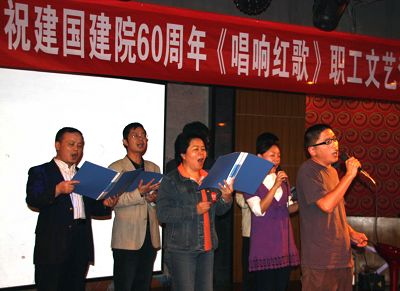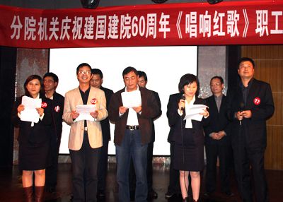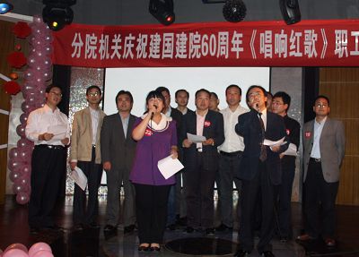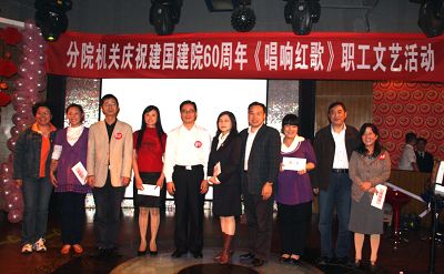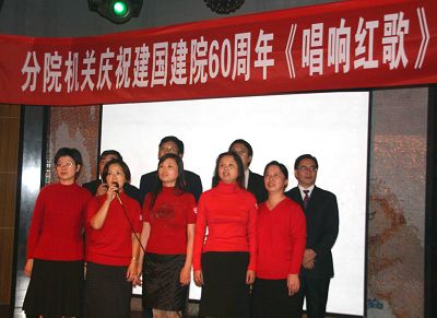 为欢庆建国建院六十周年,2009年10月21日下午,中科院成都分院机关工会全体会员欢聚一堂,举办庆祝建国建院六十周年“唱响红歌”歌咏比赛。