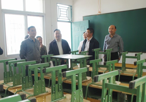 在龙形山村小学,赵永涛仔细询问了分院为孩子们新购置的课桌椅和环保黑板的使用情况。他走进教室和孩子们亲切交谈,并代表院属成都地区各单位为孩子们送上了崭新的书包和文具。