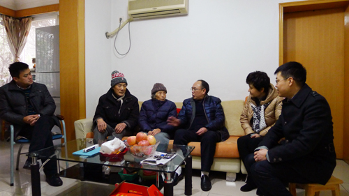 罗晓梅、陈晓清、蔡长江等与老干部及其家属亲切交谈时,细致入微地了解老同志的生活情况,问寒问暖,并祝愿老同志们身体健康,春节快乐。