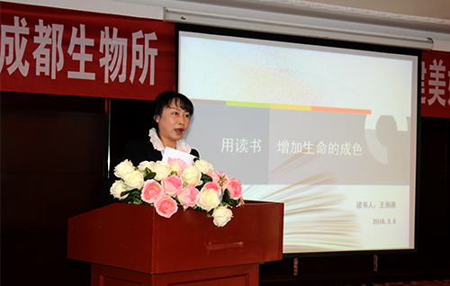 读书分享会上,作为科研部门、研究生以及管理支撑部门的3名女性代表——张礼霞、曹跃、王海燕先后登台,分别以《我的枕边书》、《时光深处的优雅》、《用读书增加生命的成色》为题,依次介绍自己阅读过的好书籍、好文章。她们声情并茂、婉转悠扬,在分享自己所阅读书籍的同时,还讲述了自己与读书之间的故事,与现场妇女姐妹们交流读书心得,交流生活工作中的点滴小事,整场读书交流会充满了温馨与感动。