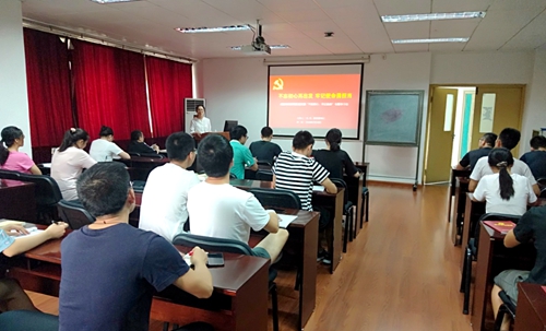 研究生党支部书记冯丹作了“不忘初心、牢记使命”主题教育辅导报告,同时带领支部党员集体学习《中共中央政治局关于加强和维护党中央集中统一领导的若干规定》精神,要求支部党员要牢固树立“四个意识”,坚定“四个自信”,做到“四个服从”和“两个维护”,自觉向以习近平同志为核心的党中央看齐。