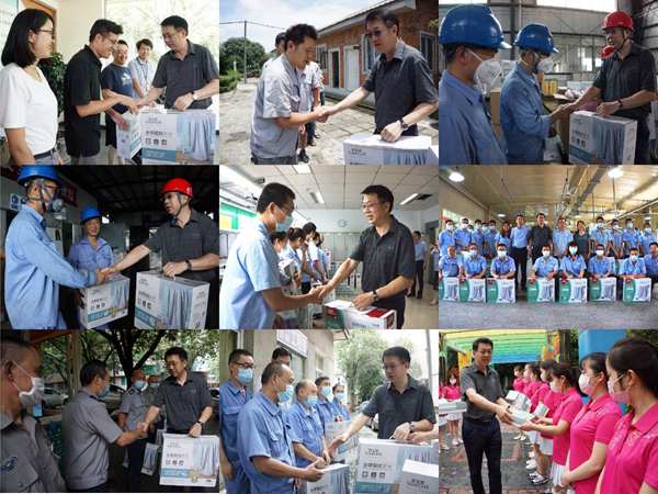 慰问组先后来到光电所、成都有机化学公司大邑产业园区、成都唯实公司、成科后勤公司和科分院实验幼儿园,看望慰问在高温作业下的科研人员、车间职工、环卫工人和安保人员,详细了解企业生产经营情况以及员工的工作环境和高温防暑情况,并带去成都分院和工会组织的关心关爱,为他们送去防暑降温物品,让一线员工在酷热的夏季感受到一片清凉。