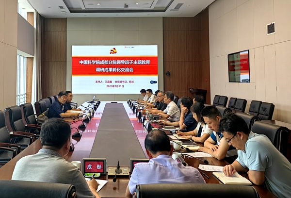 7月11日,中国科学院成都分院召开学习贯彻习近平新时代中国特色社会主义思想主题教育调研成果转化交流会。中国科学院主题教育第六巡回指导组组长郭建军、成员李凡出席会议并作指导。成都分院分党组书记、院长王嘉图主持会议。副院长、分党组成员陈锋和刘庆,纪检组组长、分党组成员刘刚君参加会议。