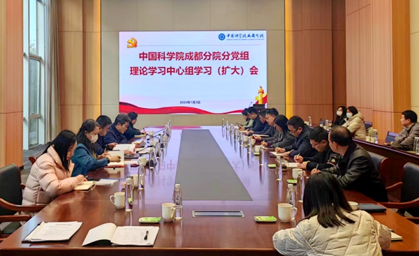 1月3日,中国科学院成都分院分党组召开理论学习中心组(扩大)学习会议,专题传达学习习近平总书记对中国科学院的重要指示批示精神和中国科学院2024年度工作会议精神。成都分院分党组书记、院长王嘉图,副院长、分党组成员刘庆,纪检组组长、分党组成员蔡长江参加会议。