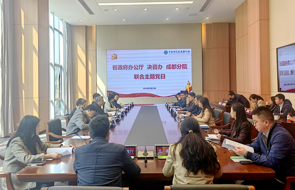 为进一步强化政治机关建设,促进党建与业务工作深度融合,3月22日,四川省决咨办党支部,四川省政府办公厅机关党办、人事处党支部与成都分院联合开展主题党日活动。决咨办主任张洁,决咨办副主任周雪、刘文,成都分院分党组书记、院长王嘉图,机关党委副书记田敏参加党建联学交流座谈会。