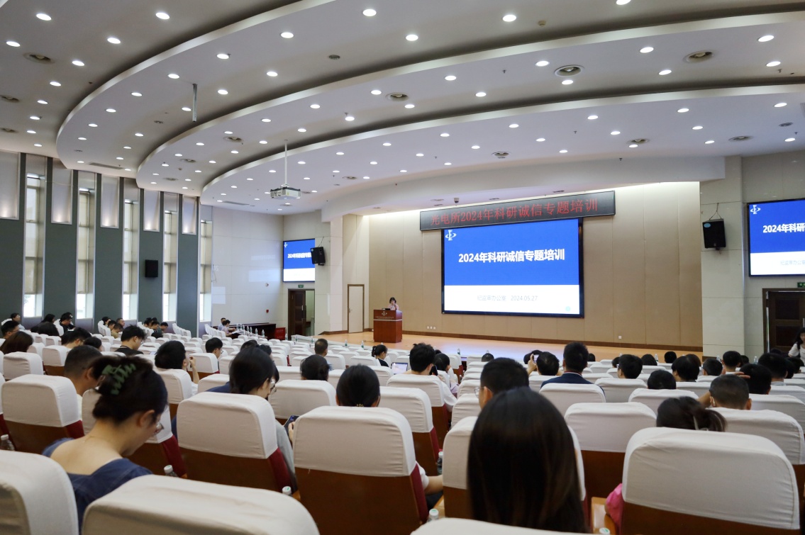 为深入贯彻习近平总书记关于科研诚信建设的重要指示批示精神,认真落实2024年中国科学院工作会议提出的关于加强科研作风学风建设的要求,加强光电所科研诚信建设、党纪学习教育,进一步提高科研人员的科研道德意识和规矩意识, 5月27日,光电所召开科研诚信教育培训会暨党委理论学习中心组学习扩大会。会议由光电所纪委书记周谊主持,全所正高级科研人员、研究生导师、研究生及年轻干部理论学习小组成员共200余人参加。
