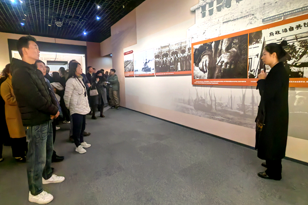 在讲解员的引导下,党员们依次参观了“引领方向”“共赴国难”“稳固后方”“挺起脊梁”“高奏凯歌”五个主题篇章。