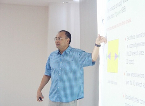 Dr. Jia gave a public presentation titled “Robot Grasping of Deformable Objects”at the academic hall of CIGIT. Dr. Jia described some recent progress made by his group on grasping of deformable planar objects under Coulomb friction. He introduced a grasping paradigm that specifies the finger displacements rather than the forces it uses. He also proposed an event-based algorithm for handling the high modeling cost from repeated deformation updates.