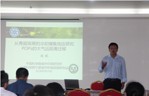 Prof. Jinsheng Chen (director of Research Center of Atmospheric Environment), Prof. Hang Xiao (talent of the fourth installment of “Young overseas high-level talents introduction plan” of Central Organization Department), and Dr. Junjun Deng from IUE (CAS) visited CIGIT on invitation of Prof. Fumo Yang (Vice Director, Division of Ecological & Environmental Research on Three Gorges), and gave academic reports on Sep. 19th, 2014. Prof. Fumo Yang presided the academic reports. Prof. Desheng Pei, Assoc. Prof. Liyan Song and Assoc. Prof. Yiwei Ren, as well as the related researchers and graduates attended the academic reports.