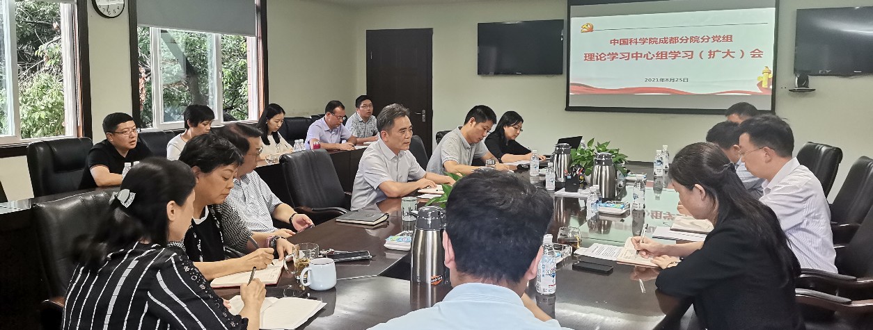 8月25日,成都分院分党组召开理论学习中心组学习(扩大)会。专题学习中科院2021年夏季党组扩大会议精神。会议由分党组书记、院长王嘉图主持。