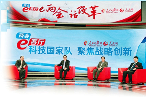 3月3日,人民日报“两会e客厅”邀请中科院党组书记、院长白春礼(上图左二),中科院党组成员、秘书长邓麦村(左三),中科院科技战略咨询研究院副院长王毅代表(右一),共同探讨科技国家队如何用科技支撑“创新、协调、绿色、开放、共享”发展理念,访谈由本报... “中国科学院作为国家科研机构,要以科技来支撑‘创新、协调、绿色、开放、共享’发展理念,聚焦国家经济社会发展重大紧迫需求和现代科学技术的前沿领域,进一步调整优化布局,整合优势资源,组织科技攻关和协同创新。”