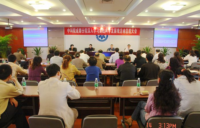 9月14日下午,中国科学院成都分院召开分院深入学习实践科学发展观活动总结大会。四川省委第八指导检查组副组长、都江堰管理局党委书记肖帆,分院领导,院属各单位所领导,省人大、省政协委员、专家学者代表,党办主任、副主任,人事处处长、副处长,分院机关全体党员、离退休及离岗退养支部书记、成科后勤、劳服司支部书记,成都教育基地研究生党员代表近120余人参加了会议。会议由成都分院院长、学习实践活动领导小组副组长彭宇行主持。