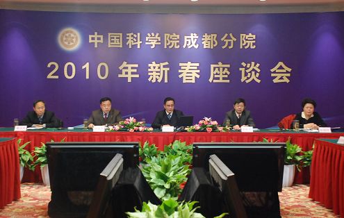 2月8日,成都分院召开2010年新春座谈会暨迎春团拜会。成都分院领导,成都地区各单位领导,中国科学院院士张景中、赵尔宓,中国工程院院士姜文汉、林祥棣,成都生物所原所长、地奥集团总裁李伯刚等出席会议。会议由成都分院院长彭宇行主持。