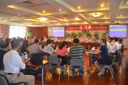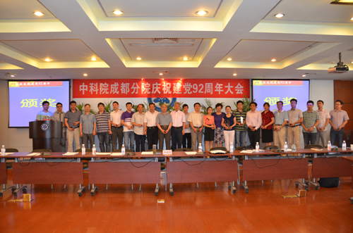 庆祝大会上,王学定做了《认真学习十八大精神,充分发挥各级党组织的作用,全面加强党建和推进创新2020工作》的主题报告。报告回顾了成都分院各级党组织在中科院党组、四川省直机关工委的领导下,深入贯彻落实党的十八大、省第十次党代会精神和中科院党建工作会精神,围绕中心、服务大局,充分发挥基层党组织的战斗堡垒作用和党员的先锋模范作用,为推进院“创新2020” 和“一三五”规划目标任务,为成都分院创新发展取得的成绩。