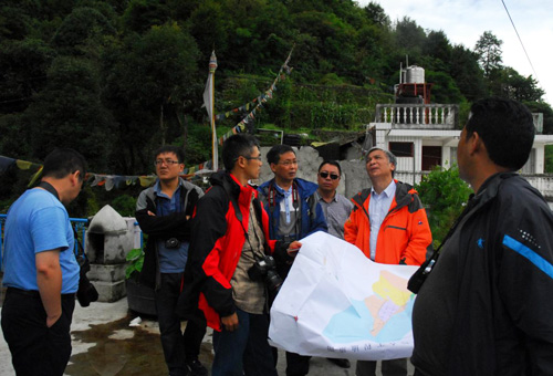 西藏自治区日喀则市国土资源局副局长王进虎和聂拉木县国土资源局局长董伟陪同考察,并介绍了今年樟木地质灾害现状,对中国科学院对樟木地质灾害的研究和防治给予的支持和帮助表示衷心的感谢。