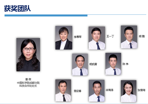 在中国科学院党组正确领导下,在院属相关单位和地方各级政府大力支持下,成都分院科技合作团队紧紧围绕中国科学院重大战略部署及川、渝、藏的重大科技需求,全面开启“十三五”科技合作新局面,坚持以“三个面向”为引领,以重大产出为导向,有效整合创新资源、促进院地协同发展,在成都分院新园区创新发展、国家重大科技基础设施、科技服务网络体系建设、转化医学成果转化、科技精准扶贫等方面取得了显著成效,探索积累了管理经验,培养集聚了务实创新的核心团队。近年来先后荣获中国产学研合作促进奖、院地合作进步最快奖、国家《全民科学素质纲要》“十二五”先进集体称号、四川省“脱贫攻坚‘五个一’驻村帮扶先进集体”称号、成都市成果转化奖、重庆高交会特别贡献奖和优秀组织奖等。