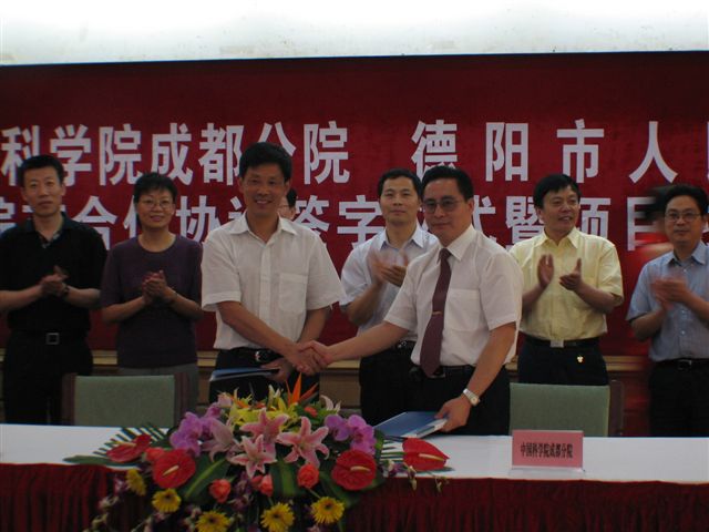 中科院成都分院副院长关晓岗、 德阳市委副书记周孟林、市委副秘书长邱大保、中科院成都分院科技合作处处长张一红、德阳市科技局局长王箭等出席了签字仪式。