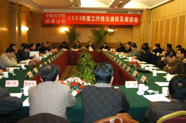 会上,成都分院院长彭宇行首先通报了2003年度分院组织完成重点工作的情况;分院领导班子成员分别作了工作述职报告;出席会议人员对分院领导班子及其成员的德能勤绩廉等方面进行了民主测评。在随后的座谈中,各单位领导对成都分院本届领导班子“整合院属成都地区各单位力量,发挥成都分院整体综合优势,为中国科学院知识创新工程和地方经济社会发展作出新贡献”的发展思路给予了充分肯定,对分院领导班子一年来的工作给予了高度评价,并对2004年的工作提出了许多建设性的意见。