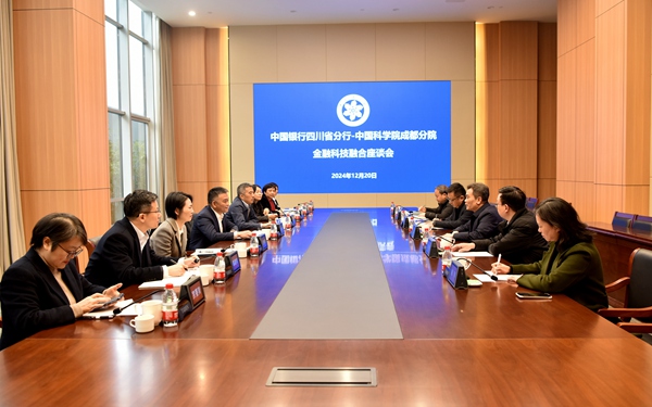 中国银行四川省分行党委委员、副行长侯建国,成都生物所党委书记、副所长刘刚君,成都中科微信息技术研究院有限公司副总经理雷辉,以及四川省分行行政事业机构部、高新支行和成都分院综合办公室相关负责人参加座谈。