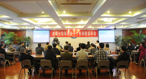 4月11日,成都分院召开了领导班子个别调整宣布会。中科院党组成员、副秘书长何岩、人事局副局长董伟锋出席会议。 4月11日,成都分院召开了领导班子个别调整宣布会。中科院党组成员、副秘书长何岩、人事局副局长董伟锋出席会议。