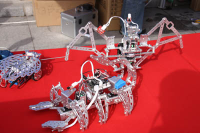 这是古脊椎动物与古人类所展示的机器恐龙,每只恐龙都是由30到100多个金属零件和单片机、传感器等电子元器件所组成,在组装以后能够实现快走、散步、吼叫和撕咬,除通过用遥控器指挥外,还可以用声音和光来控制它。