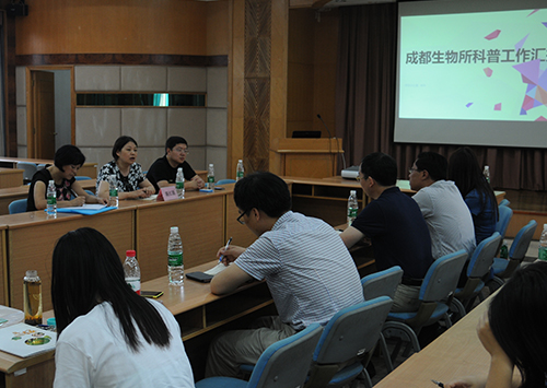 调研会上,成都生物所党委书记、副所长叶彦介绍了近一年来研究所在科普宣传方面以及在科学传播方面的工作进展及相关成绩。随后,陈红娟与各科研部门科普工作代表就现有突出的问题和未来发展态势进行了深入的交流。成都生物所综合办公室副主任朱丹就近期围绕科普宣传开展的6个方面的业务模块进行了详细的汇报。