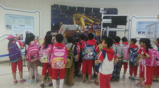 5月16日,由中国科学院重庆绿色智能技术研究院举办的“2015年科普周暨公众科学日”活动正式开幕。重庆市第六十五中学600余名师生参观了重庆绿色智能技术研究院和重庆研究院打造的“重庆机器人世界”。学生们先后参观了中国科学院重庆绿色智能技术研究院科技成果廊和重庆机器人世界的机器人体验馆、机器人竞技中心、机器人工厂、3D打印体验馆。最让同学们觉得受益匪浅的当属机器人课堂。机器人课堂有幸邀请到了中国科学院重庆绿色智能技术研究院智能神经机械电子中心主任李耀博士、新墨西哥州立大学和麻省理工学院博士、副研究员崔月华为学生们讲课。他们站在对学生进行科普的角度,从与同学们日常看到的自然现象入手,用浅显易懂的科学原理来解释,激发学生对科学的兴趣,为机器人课堂的同学们带来了一场科学的盛宴。