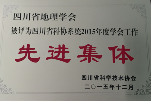 四川省地理学会荣获 “四川省科协系统2015年度学会工作先进集体”称号