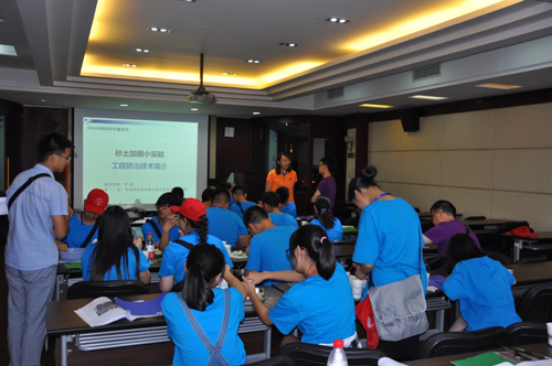 我国是世界上遭受地质灾害最为严重的国家之一,因此,地质灾害的工程治理显得十分常见。来自中科院山地灾害与地表过程实验室的罗渝博士选择滑坡灾害的工程防治结构以及处理技术作为讲授内容,通过课堂实验,让营员们对岩土工程加固技术有了一个直观的认识,并启发其思考科学原理。整个实验过程中,小营员们通过团队内激烈讨论、分析取得成功的实验方法,很好的培养了团队协作精神。为了讲好山地灾害,成都山地所综合测试与模拟试验中心李占鲁老师和刘子明老师给营员们精心设计了山地灾害成灾水土研究课题,在研究过程中,两位老师尽心尽责,讲解形式喜闻乐见,不拘一格,让同学们牢固树立了水和岩土的山地运动是造成水土流失,导致滑坡、崩塌、泥石流等地质灾害的主要原因。