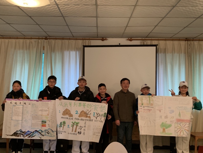 研学团沿途还考察了海螺沟冰川活动和生物演替的关系,并分为三个研究小组进行了数据整理,并通过制作论文展示海报进行了论文答辩和展示。