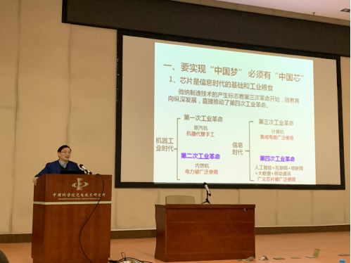 本次活动安排了两场科普讲座。胡松研究员做《芯片产业概况及光电所芯片装备研究基础》报告,他以“中国芯”的迫切需求为牵引,讲解了芯片的定义及其在信息时代的重要性和我国芯片行业现状,介绍国家近年在芯片行业的大力投入和光电所在光刻机领域长期以来取得的研究成果,以及我国在芯片产业和光刻机研究领域与国际水平的差距。报告最后,胡松研究员鼓励学生们将来能够报考中科大、国科大本科和光电所的硕士博士研究生,未来为我国芯片领域的发展贡献力量。窦普副研究员作《核设施在役检查维修与核事故应急处理机器人系统研究与应用》报告,介绍了核能发电的原理,发展核电的意义,核电在我国电能中的占比,并从核的重大需求及核环境的危险性出发,对核环境机器人的重要性和相关技术进行讲解,并详细介绍在相关领域的研究成果。
