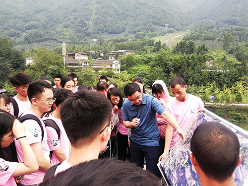 山地灾害与数字山地领域组组织43名营员们前往了都江堰虹口乡白沙河沿线和汶川县映秀镇等地开展实地参观和野外科考。山地灾害重点实验室硕士生导师杨宗佶副研究员随队讲解。在白沙河干沟泥石流防治区,营员们了解了龙门山断裂带的成因、典型地貌、岩石类型等,对沿线的山地灾害点和防护工程及灾害监测预警点进行了实地观察。在红色村,营员们实地察看了崩塌、泥石流、滑坡的地貌形态、成因等,了解了山地灾害防治理论在泥石流、滑坡等灾害防治中的应用。杨宗佶结合银洞子沟泥石流、白沙河塔子坪滑坡和红色村干沟治理工程等向营员们介绍了野外科考基本方法、山地灾害防护工程设计、防治方案设计等方面的知识,并启发营员们积极思考。营员们参观了映秀镇5.12地震遗址博物馆,加深了对山地灾害的认识。