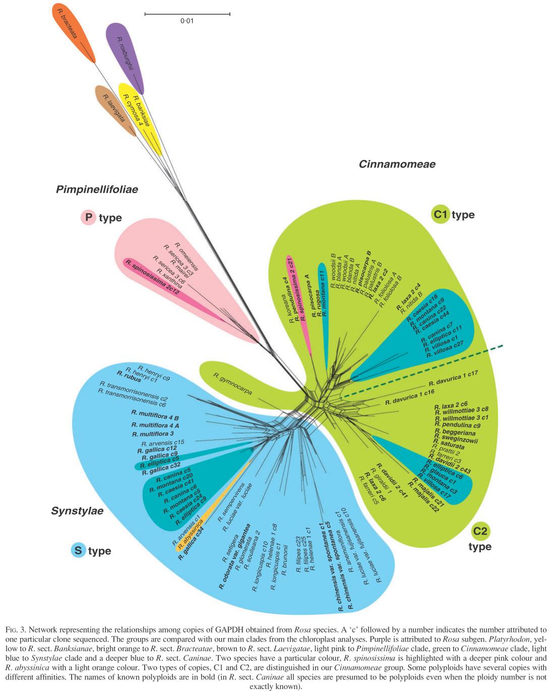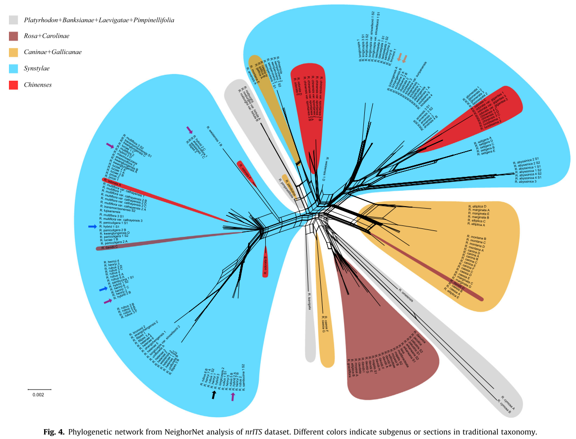 这部分研究结果以“Phylogeny and biogeography of wild roses with specific attention to polyploids”为题,发表在“Annals of Botany, 115: 275–291, 2015”.