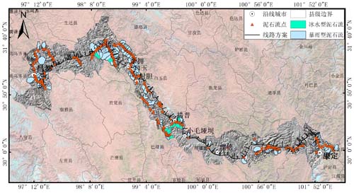 基于以上研究,项目组提出了川藏铁路康定—昌都段典型路段、重点灾点、主要车站铁路选线建议,向中铁二院集团有限公司提交了《川藏铁路康定—昌都段山地灾害分布规律分析与选线建议技术咨询报告》,目前已获采纳。