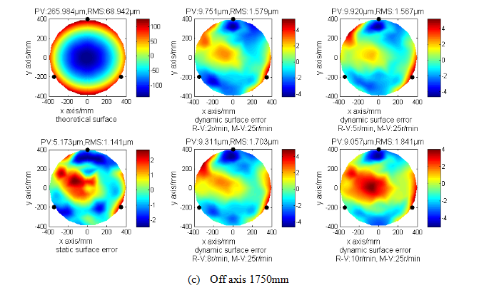 4m f/1.5主镜加工中,不同离轴位置情况下磨盘静态面形误差与多种转速下动态面形误差对比图