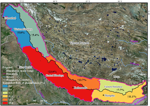 喜马拉雅地区快速扩张冰湖分布和冰湖分布密度差异