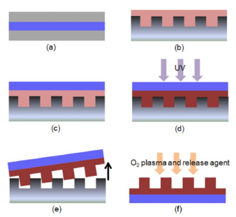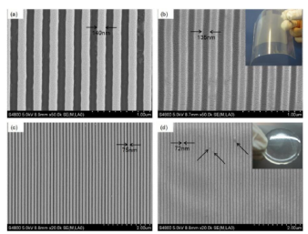 图2 以PDMS和PET为基底的亚100nm的复合软压印模板