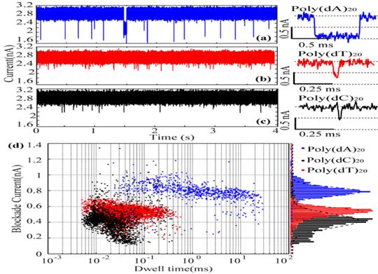 南开大学田建国团队合作在电击穿制备固态纳米孔技术及其3D形态操控研究方面取得进展,相关研究成果以“3D nanopore shape control by current-stimulus dielectric breakdown”为题在《Applied Physics Letters》期刊上发表。 研究团队提出了一种简单有效地电击穿制备固态纳米孔技术,在20纳米氮化硅薄膜上制备出圆锥形的3D纳米通道,通过系统逐渐改变电流脉冲波形,实现纳米通道圆锥角及纳米通道大小的操控,制备出可应用于生物传感或者精确DNA测序的亚纳米通道。研究结果表明,制备出的固态纳米孔可以清晰地区分3种DNA均聚物(poly(dA)20、poly(dC)20和poly(dT)20)。