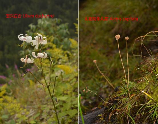 在为期一年多月的野外考察中,考察队分为5次对保护区内各山沟谷开展了调查和采集。采集包括了滋圃报春_Primula soongii 、反边杜鹃_Rhododendron thayerianum、宝兴杜鹃_Rhododendron moupinense、西固凤仙花_Impatiens notolopha、宝兴栒子_Cotoneaster moupinensis、宝兴葶苈_Draba moupinensis、峨参叶紫堇_Corydalis anthriscifolia、宝兴淫羊藿_Epimedium davidii、大渡乌头_Aconitum franchetii、大叶柳_Salix magnifica、蚀盖耳蕨_Polystichum erosum、川西蹄盖蕨_Athyrium costulalisorum、蒓蓝绣球_Hydrangea longipes、大卫梅花草_Parnassia davidii及宝兴悬钩子_Rubus ourosepalus等植物模式原产地物种标本1223号,分子材料1200余份及其他活体材料30多种,图片44000余张,这为后期保护区植物模式原产地资源的保护和种质资源的收集保存奠定了基础。