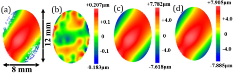 仪面形数据,(c)DS检测变形镜的结果,(d)系统误差标定后的最终结果