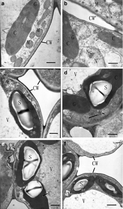 雌雄青杨在铅胁迫和性别竞争条件下叶肉细胞的透射电镜观察