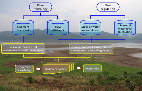 三峡水库蓄水运行形成的水位季节性消涨导致消落带面临植被消亡及生态功能退化、土壤侵蚀加剧和污染物循环累积等一系列生态环境问题。在国家自然科学基金资助下,成都山地所水土保持研究团队基于三峡水库消落带沉积物颗粒时空分异特征,分析了水库特定水文调节过程和长江上游季节性输沙叠加效应对三峡水库消落带泥沙沉积的筛选过程,并针对对消落带环境现状探讨了消落带生态修复策略。