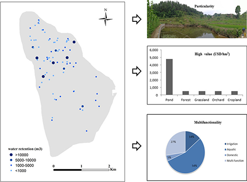 研究还发现,多功能型水塘的用水量最多,而养殖型水塘的服务价值最高。整体上而言,水塘的利用存在管理弱、价值低等问题,需要根据山区的新变化,及时引导农户开展水塘生态化管理,以促进保护和利用。