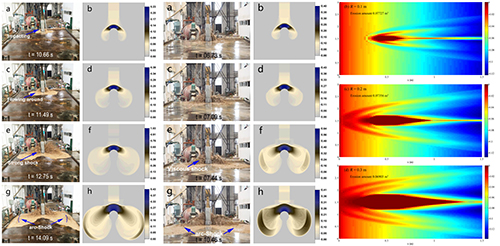研究团队通过构建固-液两相泥石流动力学模拟平台开展了泥石流-桥墩相互作用全过程模拟研究,揭示了不同类型泥石流-桥墩绕流特性、冲击动力响应规律与桥墩冲刷机制,建立了基于泥石流颗粒分布特性的冲击力计算公式,发展了泥石流对桥墩冲刷数值模拟方法、固液两相泥石流桥墩绕流数值模拟方法,并对成兰铁路已建泥石流防撞墩进行了抗冲击安全复核。系列研究成果对指导成兰铁路沿线泥石流防治发挥了重要作用,对未来川藏铁路沿线泥石流灾害防治有借鉴作用。