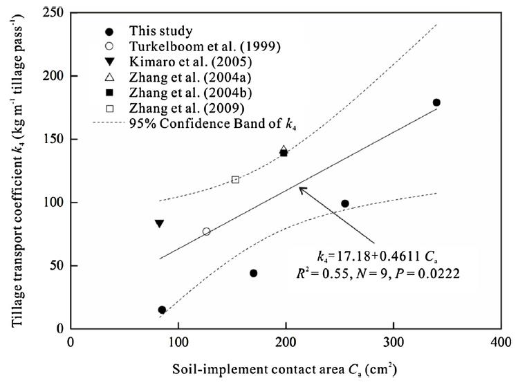 耕作传输系数和土壤——耕具接触面积的关系