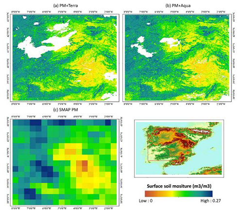 地表土壤水分是陆表表层生态系统的重要参量,是控制地气水分与热量交换过程的关键要素,了解和掌握地表土壤水分时空动态变化,对理解地表水文过程在地球气候、生态、和生物化学过程具有至关重要的作用。其中,卫星遥感是实时、动态监测区域地表土壤水分最为有效的手段之一。但是,当前地表土壤水分的遥感估算方法,尤其是基于可见光、热红外的遥感观测手段,在准确表达地表土壤水分的时空方面还存在很大的不确定,而基于被动微波的土壤水分观测手段,虽然观测信号与地表土壤水分具有很高的相关性,但是由于其粗空间分辨率特征(网格尺度数十公里),很难满足区域和局地尺度应用需求。为了从土壤水分遥感估算模型和空间尺度方面解决上述问题,成都山地灾害与环境研究所赵伟副研究员等通过地面观测数据与高空间分辨率遥感数据相结合以及多源遥感数据相耦合的方式,在遥感估算模型和空间尺度转换方向取得系列研究进展。