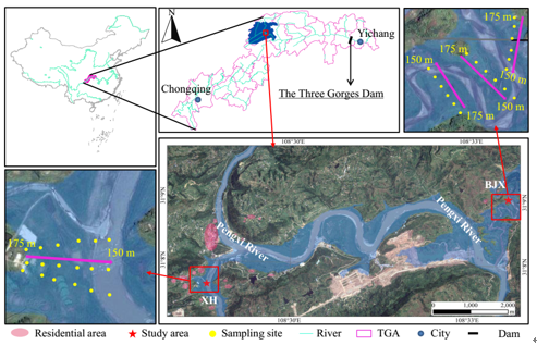 三峡水库运行后,库区水位周期波动,库岸在最高水位(175 m)与最低水位(145 m)之间形成了水库消落带。周期性的淹没与出露改变了消落带土壤的基本性质,同时,库区人类活动排放(如生活污水、农业面源等)也会对消落带土壤产生影响,形成水位波动与人类活动的“双重干扰”。水位波动与人类活动分别如何影响消落带土壤理化性质的变化?二者相对作用如何? 针对上述问题,重庆研究院科研团队通过在三峡库区选择两种不同干扰强度的典型消落带区域,对土壤理化性质开展了连续两年的跟踪观测,基于此建立了针对消落带土壤影响因素与空间分布的系列模型。
